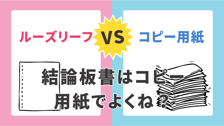 大学の授業では、プリントや配布資料をもらう機会も多いですよね。ほとんどの資料はA4サイズなので、板書をA4コピー用紙にすれば、資料と板書のサイズが揃うため、一緒にファイリングしたり保管したりする際に気持ちいいです。