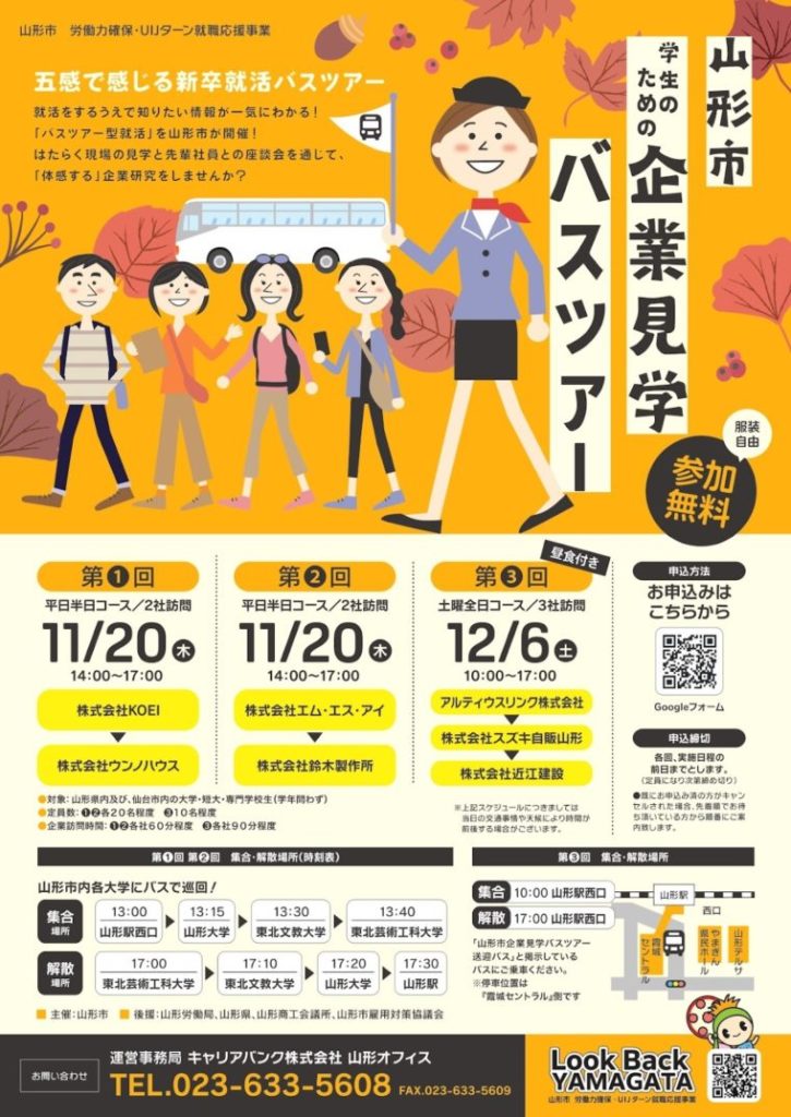 山形県内の就職イベントでは「企業見学バスツアー」が所々で開催されています。
