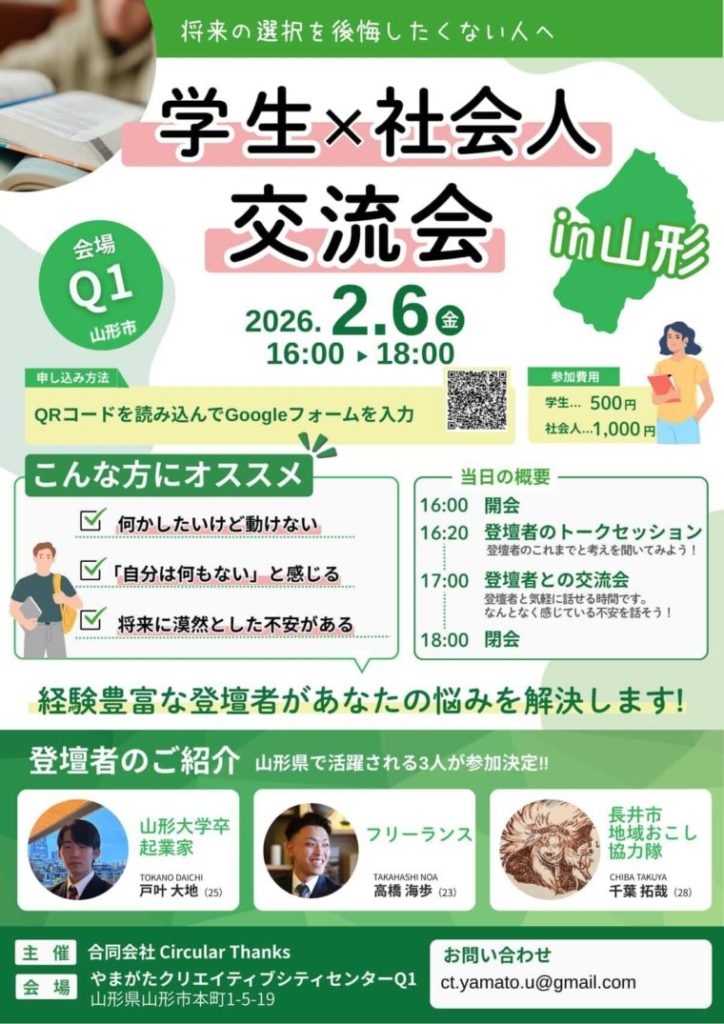 山形県で活躍される3人が登壇し、トークセッションをします。